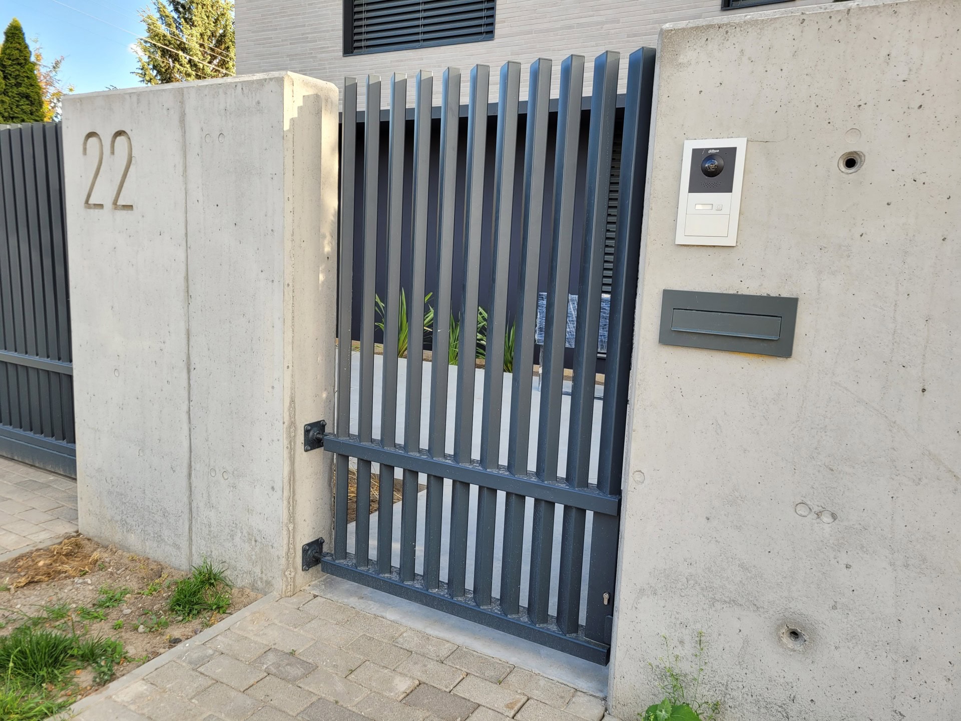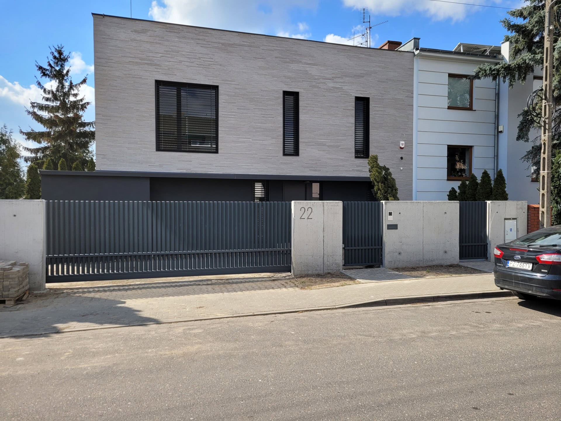 Nowoczesne, solidne ogrodzenie palisadowe z metalu od Metal-Serwis Obrzycko. Przedstawione nowoczesne ogrodzenie palisadowe z metalu, solidne i trwałe, wykonane przez Metal-Serwis Obrzycko. Opisz dokładnie co widzisz na zdjęciu (rodzaj ogrodzenia, materiał). Obowiązkowo na końcu każdego opisu dodaj frazę: „- ogrodzenie Metal-Serwis Obrzyc. Nowoczesne ogrodzenie palisadowe z metalowych prętów, solidne i trwałe - ogrodzenie Metal-Serwis Obrzycko. Nowoczesne ogrodzenie palisadowe z metalowych prętów, czarne, z automatyczną bramą. - ogrodzenie Metal-Serwis Obrzycko. Nowoczesne ogrodzenie palisadowe z metalu, czarne, wysokie, z szerokimi prętami - ogrodzenie Metal-Serwis Obrzycko. Nowoczesne ogrodzenie palisadowe z metalowych prętów, montaż na betonowej podstawie - ogrodzenie Metal-Serwis Obrzycko. Pionowe metalowe ogrodzenie palisadowe w kolorze czarnym, zamontowane na betonowych słupach - ogrodzenie Metal-Serwis Obrzycko. Zdjęcie ogrodzenia palisadowego z metalowych prętów, zamontowanego na posesji. - ogrodzenie Metal-Serwis Obrzycko. Solidne, nowoczesne ogrodzenie panelowe z ocynkowanego metalu od Metal-Serwis Obrzycko - trwałe i estetyczne rozwiązanie. ogrodzenie-02-03 Nowoczesne ogrodzenie palisadowe z czarnego metalu, montowane przy nowoczesnym budynku w Dobrogostowie. - ogrodzenie Metal-Serwis Obrzycko. Przedstawia nowoczesne, solidne ogrodzenie palisadowe z metalu, montowane przez Metal-Serwis w Obrzycku. Zdjęcie ogrodzenia palisadowego z metalowych prętów, w trakcie montażu, z drzewami i placem budowy w tle - ogrodzenie Metal-Serwis Obrzycko. Opis dokładnie, nowoczesne ogrodzenie palisadowe z metalowych paneli, zamontowane na betonowych słupkach - ogrodzenie Metal-Serwis Obrzycko.