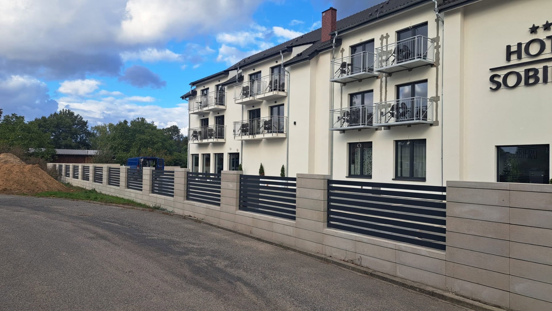 Ogrodzenie panelowe z czarnych metalowych prętów, nowoczesny i solidny design. - ogrodzenie Metal-Serwis Obrzycko. Nowoczesne ogrodzenie palisadowe z metalowych lameli, czarne i szare elementy, solidne wykonanie - ogrodzenie Metal-Serwis Obrzycko. Przedłużenie nowoczesnego ogrodzenia poziomego z metalowych lameli, solidne i estetyczne - ogrodzenie Metal-Serwis Obrzycko. Opisz dokładnie co widzisz na zdjęciu (rodzaj ogrodzenia, materiał). Obowiązkowo na końcu każdego opisu dodaj frazę: „- ogrodzenie Metal-Serwis Obrzyc. Metalowa brama w stylu nowoczesnym, wykonana z wysokiej jakości materiałów, zamontowana na betonowej podstawie - ogrodzenie Metal-Serwis Obrzycko. Przesuwne, nowoczesne ogrodzenie stalowe z poziomymi lamelami, solidne i trwałe. Idealne do zabezpieczenia posesji. - ogrodzenie Metal-Serwis Obrzycko. Przedstawione nowoczesne, poziome ogrodzenie z czarnych metalowych lameli, solidne i estetyczne - ogrodzenie Metal-Serwis Obrzycko. Opisz dokładnie co widzisz na zdjęciu (rodzaj ogrodzenia, materiał). Obowiązkowo na końcu każdego opisu dodaj frazę: „- ogrodzenie Metal-Serwis Obrzyc. Szare ogrodzenie panelowe z betonu, nowoczesne i solidne, idealne do hoteli i obiektów komercyjnych - ogrodzenie Metal-Serwis Obrzycko. Przedstawione ogrodzenie palisadowe z metalu wokół hotelu Sobieraj, nowoczesne i solidne, wykonane przez Metal-Serwis Obrzycko.