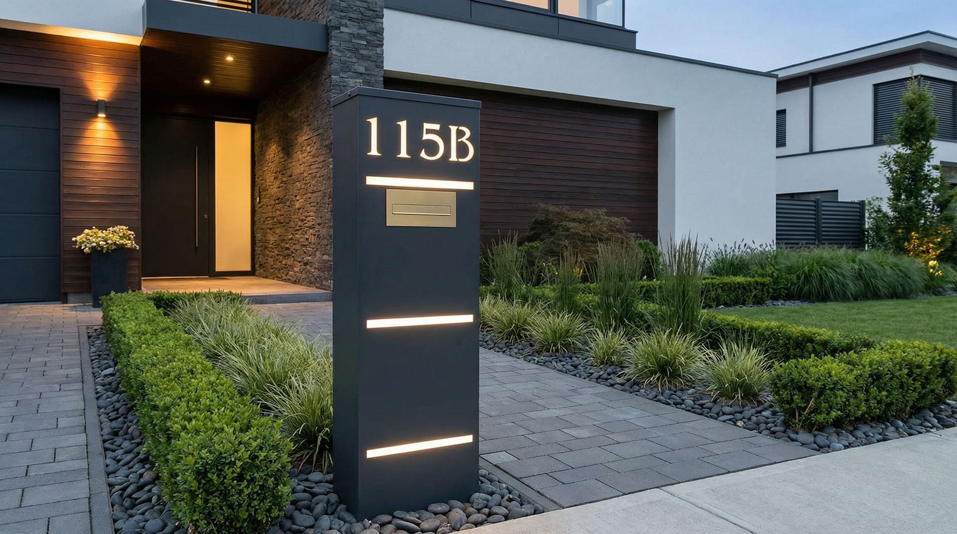 skrzynkę na listy, nazwę ulicy oraz numer domu, który może być podświetlany. Każdy słup projektujemy tak aby był zintegrowany z ogrodzeniem i tworzył całość.